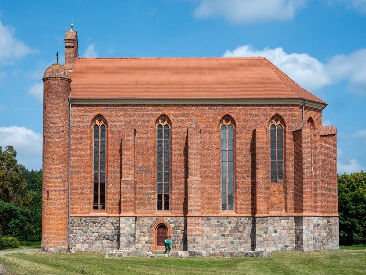 • Wieże: Od strony zachodniej kościół zdobią dwie smukłe, cylindryczne wieżyczki, które nadają budowli charakter obronny (podobieństwo do zamków rycerskich).