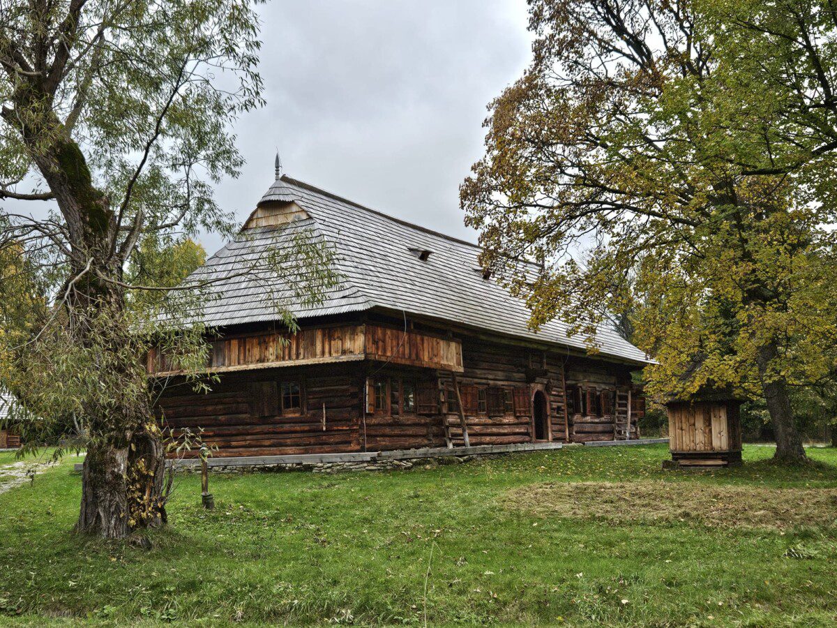 Spacerując alejkami skansenu, mijamy urokliwe, drewniane chałupy z podcieniami, kryte strzechą lub trzciną. Wnętrza budynków są kompletnie wyposażone - meble, naczynia, tkaniny i narzędzia wyglądają tak, jakby gospodarze wyszli tylko na chwilę w pole. Perełkami są: