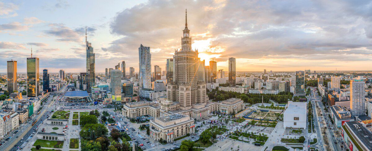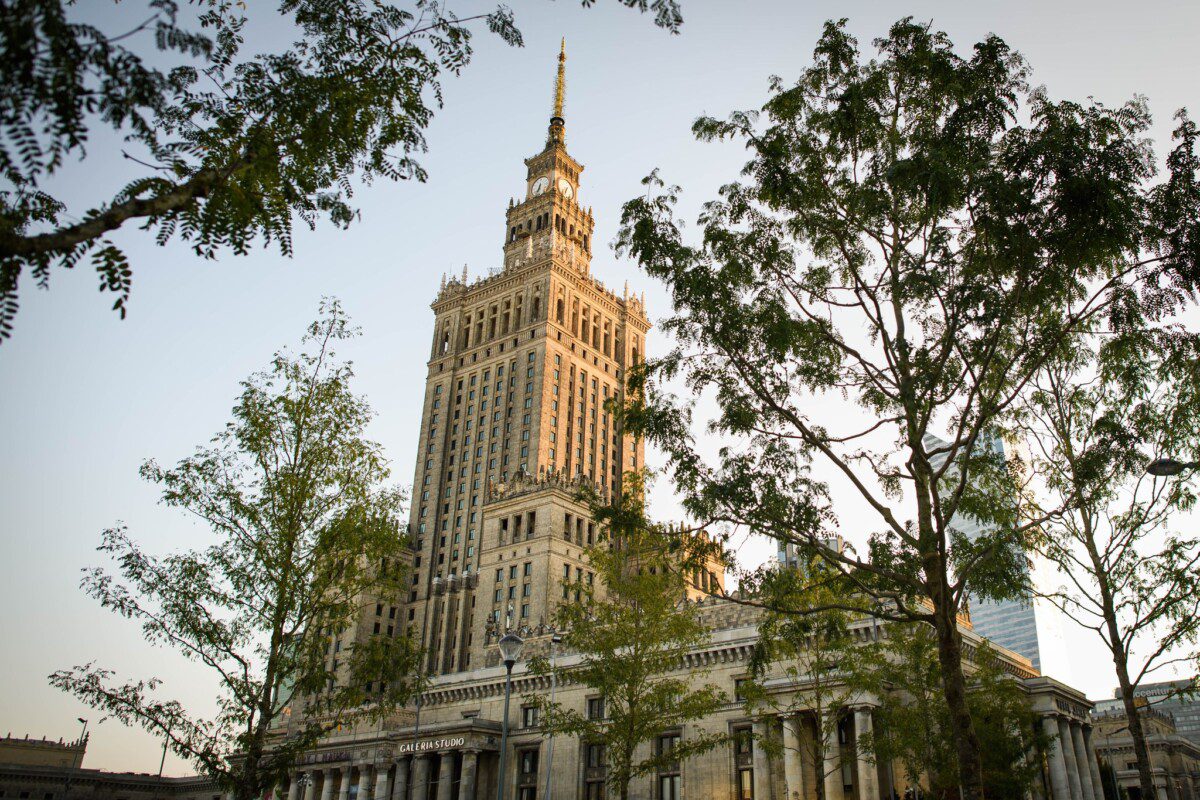 Pałac Kultury i Nauki to monumentalny kompleks położony na placu Defilad, będący przykładem radzieckiego historyzmu (tzw. stylu stalinowskiego), który miał łączyć socjalistyczną treść z narodową formą.