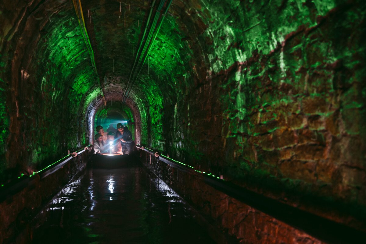 Podziemny Spływ Łodziami: To absolutny hit. Turyści pokonują 1100 metrów łodziami elektrycznymi w autentycznym chodniku wykutym w skale i węglu. Trasa kończy się w samym centrum miasta, w tzw. porcie załadunkowym.