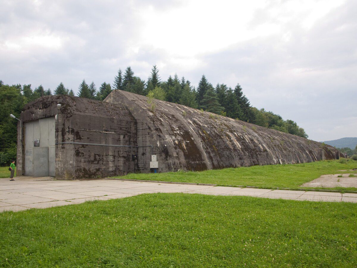 Tunel ma długość około 380 metrów, grubość jego ścian dochodzi do 2 metrów, a wysokość wewnętrzna to około 9 metrów. Posiadał dwa wloty (północny i południowy), zamykane potężnymi drzwiami pancernymi, a także boczne odnogi i schrony. Cały kompleks był starannie zamaskowany siatkami, drzewami i krzewami, aby uniemożliwić jego wykrycie. Obok tunelu znajdowały się również inne obiekty pomocnicze, takie jak bunkry, zaplecze techniczne, a nawet lądowisko polowe.