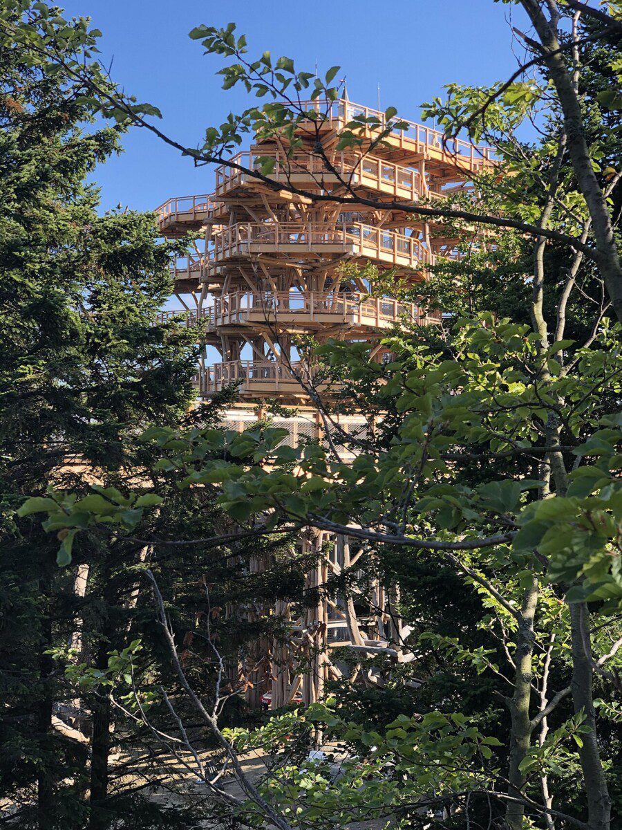 Pierwsza w Polsce Wieża widokowa w koronach drzew o unikatowej drewnianej konstrukcji.