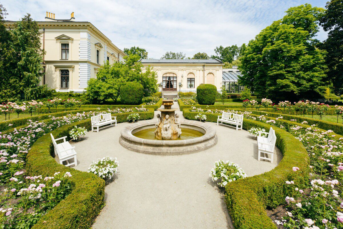 - Witraże, piece kaflowe, parkiety, tapety jedwabne: Wszystkie elementy wystroju są oryginalne lub pieczołowicie odtworzone na podstawie dokumentacji.