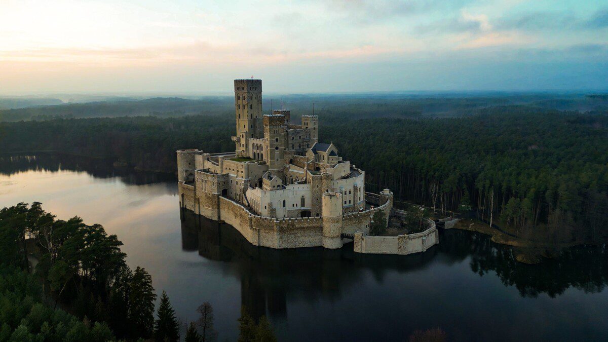 Lokalizacja: Zamek wzniesiono na sztucznie usypanej wyspie na jeziorze w Stobnicy, na samym skraju obszaru Natura 2000 „Puszcza Notecka”.